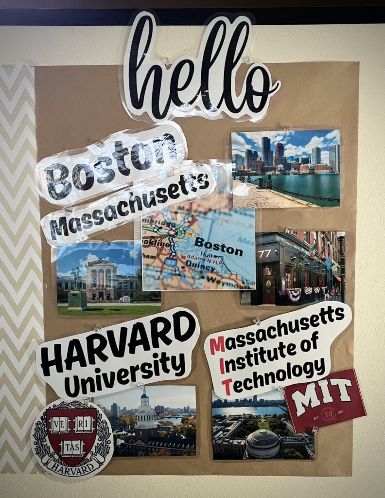 ボストンに短期留学に行った生徒さん、名古屋の学校に4月から進学される生徒さん、それぞれの生徒さん達の記念にBulletin Boardを作ってみました。他の生徒さん達も興味をもってみてくれるといいなと思います💛